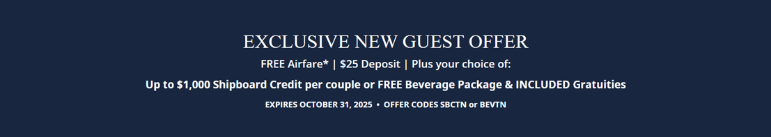 Bonus Virtuoso Amenity: TRAVELINK guests will receive a $100 shipboard credit per person; limit $200 per stateroom on select departures.