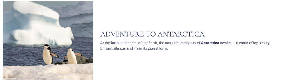 *Black Friday Offer is valid for new stateroom and suite bookings made by December 5, 2025 on 20 select expeditions. Guests booking an Adventure Oceanview or Veranda Stateroom—or a Junior Suite (effective April 2, 2026)—receive one complimentary amenity (categories AO, B2, B1, A2, A1, E2, E1). Guests booking a Navigator, Discovery, or Journey Suite with butler service receive two complimentary amenities (categories NS, DS, JS). Fares are in U.S. dollars per guest based on double occupancy, include Bonus Savings, and Government Taxes and Fees between $300 and $1,050 per guest (varies by expedition), which are not eligible for special offers or promotional savings. Air, shore excursions, or pre- and post-cruise land programs are not included unless otherwise noted. All fares, special offers and inclusions are subject to change at any time without notice. Other restrictions may apply. Visas may be required for travel. ©2025 Atlas Ocean Voyages. Ships’ Registry: Portugal