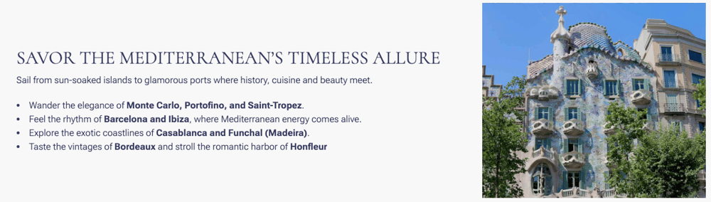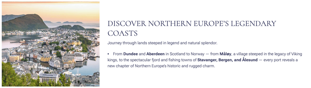 Please work with your travel advisor to select your voyage by submitting a TRIP REQUEST. Sample itinerary below: