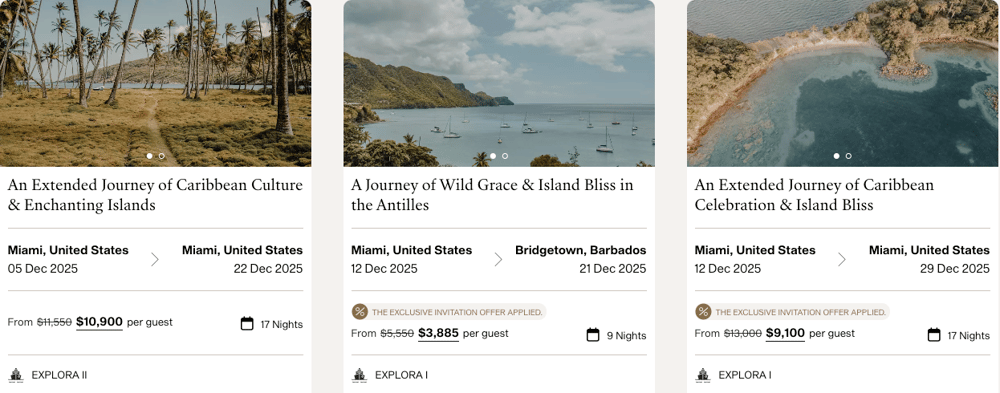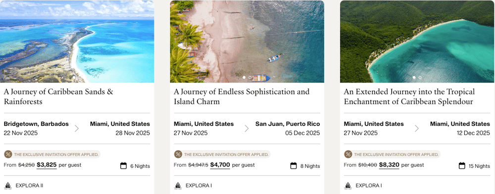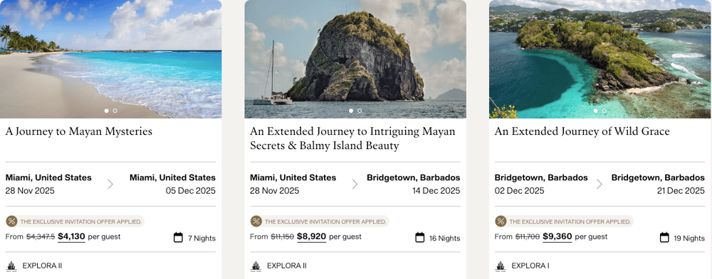 Don’t miss your chance: The Exclusive Invitation offers up to 40% value savings on your next Journey when you reserve by December 1, 2025 with only a 5% deposit.* Step aboard your ultra-elegant home at sea, where spacious oceanfront suites, world-class dining, and ocean-inspired wellness set the stage for discovery.