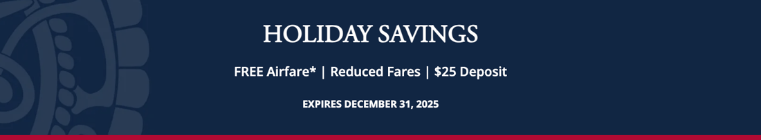 2025-2028 OCEAN CRUISE AND AIR FARES: Offer applies to bookings made from December 1-31, 2025. Terms & conditions for select promotions may vary. $25 deposit is applicable to all itineraries except World Cruise products.