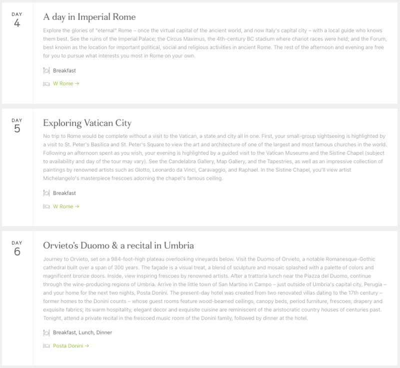 As a service, Tauck will make hotel reservations before or after your trip on a space available basis upon request. These hotel charges will be added to your Trip cost. Personal Expenses such as phone calls, room service, alcoholic and bar beverages, laundry, airline excess luggage charges and other optional incidental extras are not included. This list is illustrative and not a complete list of every item not included.