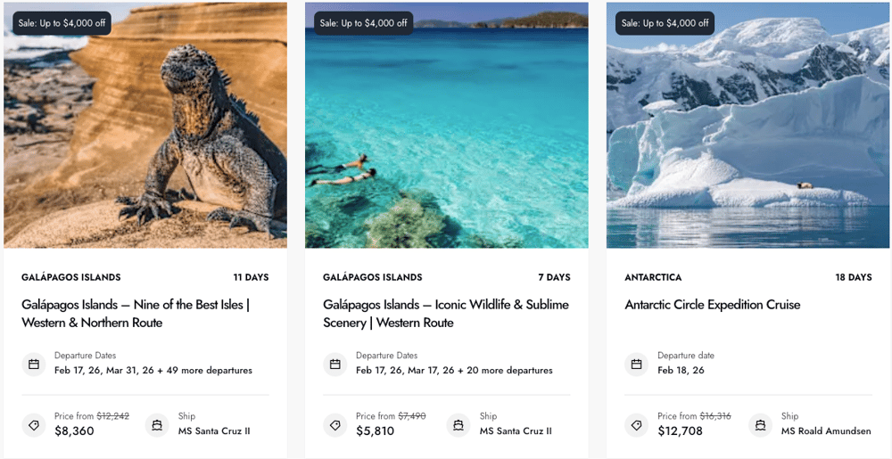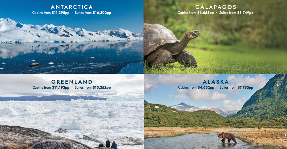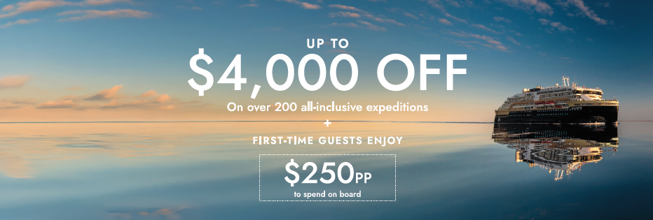 For a limited time only save up to $4,000 on all-inclusive expeditions to Alaska, Antarctica, Galápagos, Greenland, Iceland, Northwest Passage & Arctic Canada, Norway, and Svalbard.
