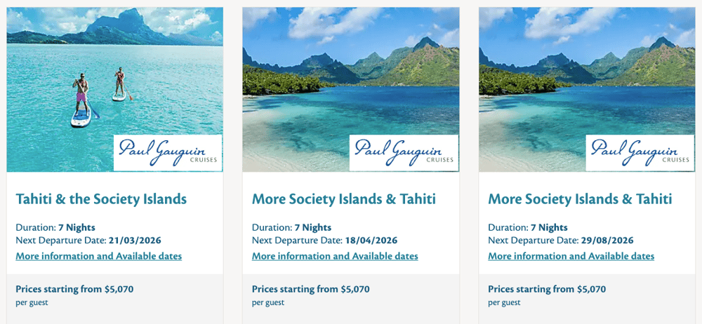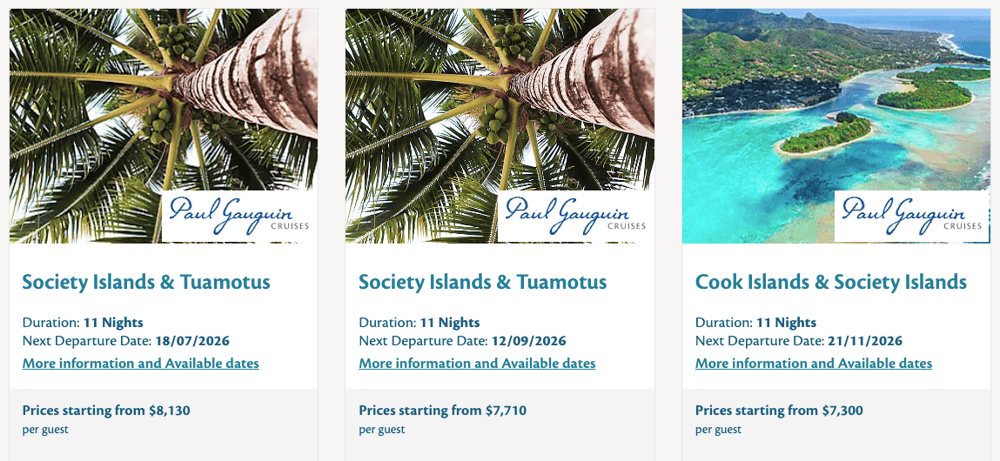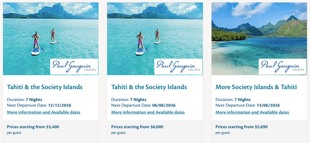 *Terms & Conditions: Offer valid for new bookings made between January 6, 2026 to February 28, 2026 for all 2026 sailings. Offer applies only to new bookings made using the OFFER CODE: SWEETAH. Shipboard credit offer is available only to 1st/2nd guest in stateroom, maximum of $1,000 per booking. Offer is combinable with PG Bonus, PONANT Yacht Club (PYC), Join the Club (JTC), National Account offers, Canadian resident discount, 0% or 50% single supplement (all single occupancy bookings receive $500 SBC total), group pricing. Pricing is in USD and includes port charges of $140-$280 per guest, depending on itinerary. Offer has no cash value and is subject to availability, capacity controlled. Paul Gauguin Cruises may modify or withdraw Offer or any of its elements at any time. Paul Gauguin Cruises is neither responsible nor liable for any errors relating to Offer, including technical errors. Offer is neither transferable, substitutable nor redeemable for cash. Any changes made after booking may incur amendment or cancellation fees. Additional terms and conditions may apply. All information is accurate at the time of deployment but is subject to change. All rights reserved. Other restrictions may apply.