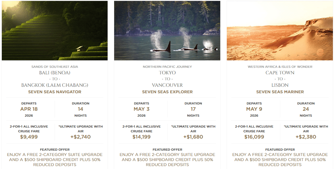 - $500 Shipboard Credit per Suite on 2026 Voyages