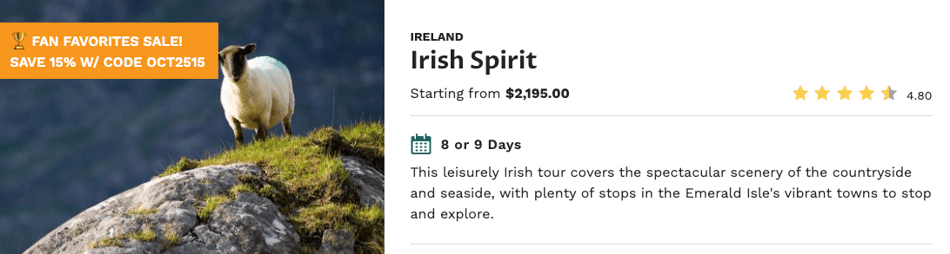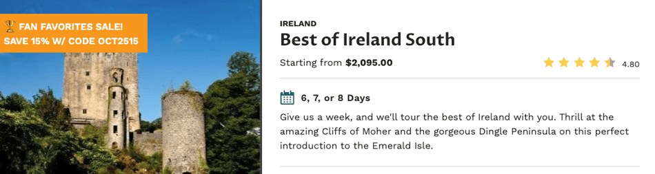 Save Big on CIE Tours' Most Popular Guided Vacations in Ireland — Or Create your Dream Trip with a Custom Private Driver Vacation!