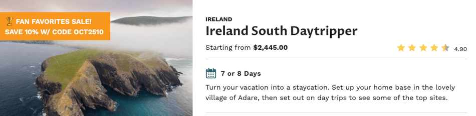 This offer extends to their Custom Private Driver vacations, so you can design your dream trip your way. With a 95% guest satisfaction rating, you can book with confidence knowing you’re in expert hands.