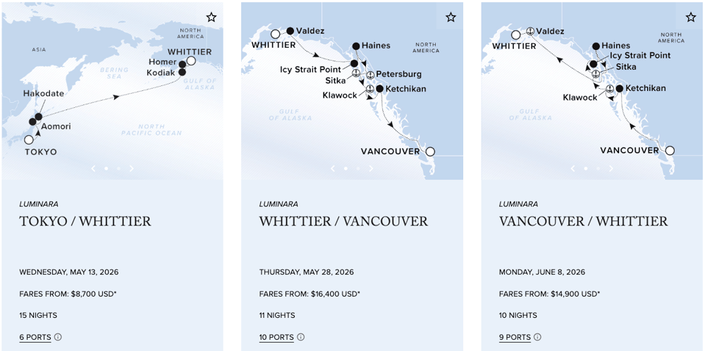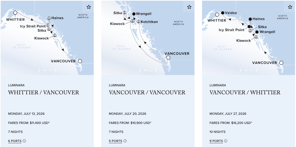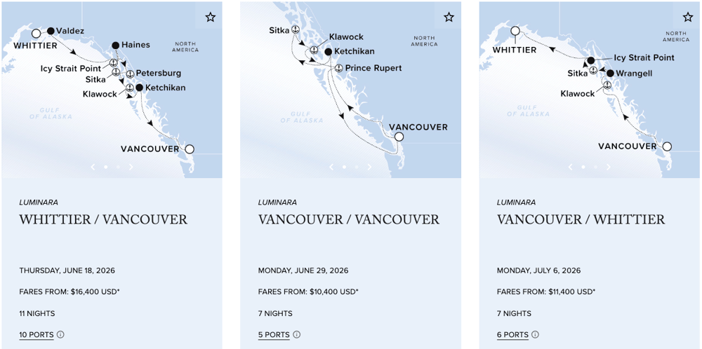 Alaska’s vast landscapes unfold in towering glaciers, quiet fjords, and coastal towns shaped by deep cultural traditions. Sail through the Inside Passage and into Glacier Bay, where pristine wilderness is explored at a comfortable pace, from intimate Zodiac excursions to kayaking in serene waters. Special onboard enrichment, led by seasoned naturalists and cultural experts, offers deeper insight into Alaska’s ecosystems and history.
