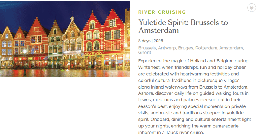 Tauck has been named to Travel + Leisure’s “World’s Best” list for 23 consecutive years. Their exclusive access, provided by their longstanding relationships with supplier partners around the globe, helps to create journeys that are unforgettable, that astonish you with the unexpected while exploring all 7 continents in over 100 destinations and 70+ countries. Intimate, authentic travel experiences truly connect you more deeply with the destinations you explore. See the world beyond ordinary as Tauck continues to add new destinations and ways to experience this amazing planet we live on.
